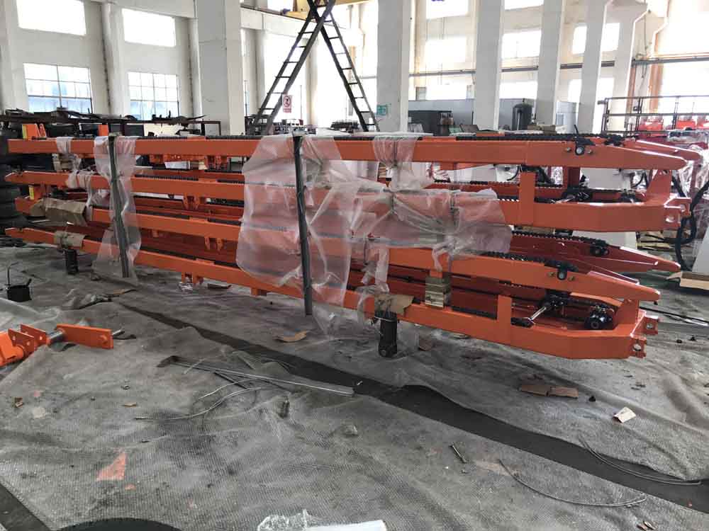 Auto unloading , can lay bins out in the orchard or field for filling or pick directly into bins on trailer.