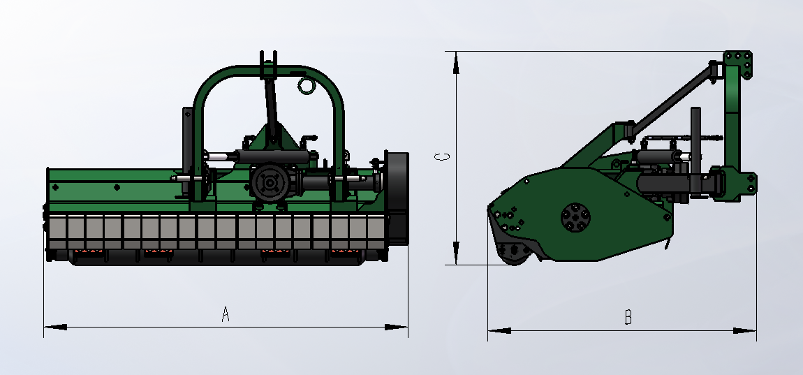 The GKK/GKKH Flail Mower/Shredder has an adjustable offset that can be set manually or hydraulically with the optional hydraulic cylinder. for working on grass, leaves, vine , brush, pruning’s and Branches.