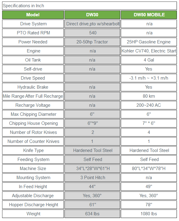 Farmer-Helper DW30 Drop-Feed Chipper is a compact, economically priced unit that will provide an excellent means of disposing of limbs, branches, and other debris. These units are popular rental machines, for the homeowner looking to clean up their yard in the fall and winter. This PTO powered unit is convenient in chipping in orchards and other applications where your tractor can take it.