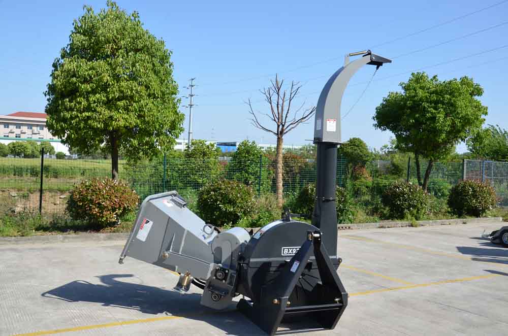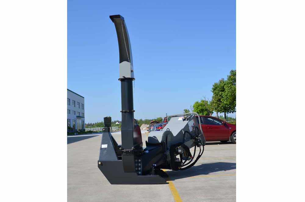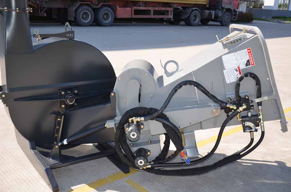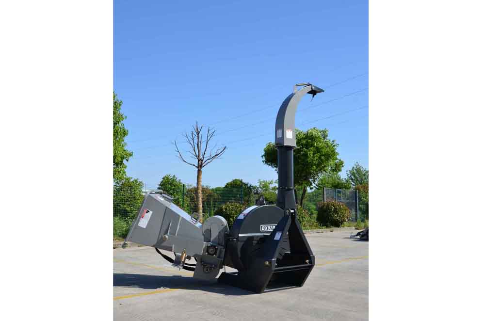 The chute has a height of 220 cm (plus the height of the lower link) and can be rotated 360 degrees. We are also able to additionally deliver a 50 cm chute extension upon request. This enables easy direction of the chippings onto a tractor trailer or directly into Big Bags. The ejection angle can also be changed. The BX-92RS can expel the chippings up to 10 m.